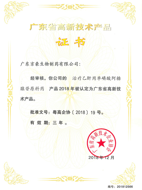 取得單磷酸阿糖腺苷原料藥的《藥品GMP證書》(GD20150047)取得醫療器械生產備案憑證、醫療器械產品上市銷售榮獲評為高新技術企業