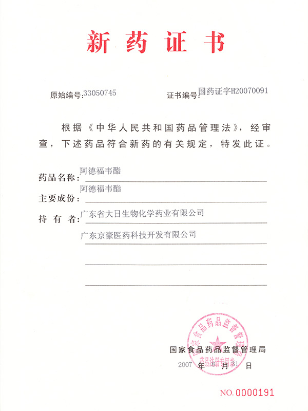 治療慢性乙型肝炎國家一類新藥“久樂”阿德福韋酯片投產、 上市