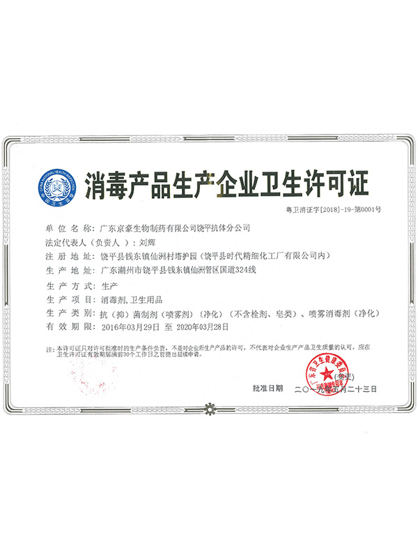 取得《消毒產品生產企業衛生許可證》,生物抗體產品實現上市和銷售。